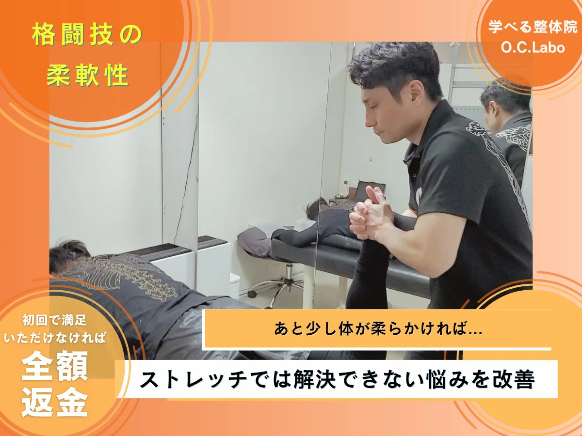格闘技の柔軟性 TOP> 格闘技の柔軟性格闘技の柔軟性当院の施術を受けた皆さんの声自分の身体とは思えない程の柔軟性と変化が!幼少の頃から武道を行っており、身体の硬さが怪我の要因になる事がしばしばありました。また、武道... 2026.02.27